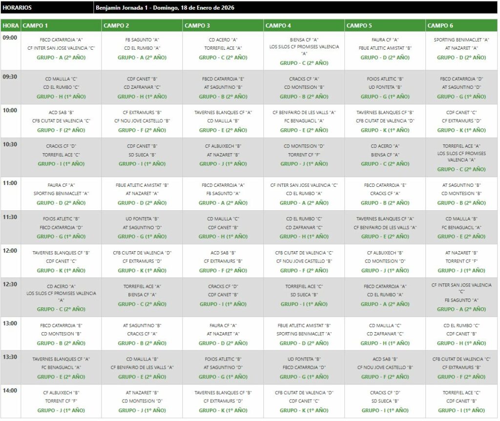Participarán en esta primera jornada 24 equipos en la categoría de Benjamín 2º año (nacidos en 2016) repartidos en 6 grupos de 4 equipos y 20 en la categoría de Benjamín 1º año (nacidos en 2017), repartidos en 5 grupos de 4 equipos.